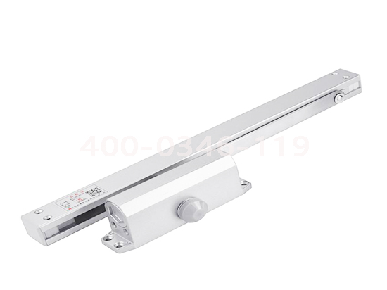 根據關門力量大小要求,通過將連接座反轉180°或改變連接桿與連接座間的連接位置,可改變關門力量。同時閉門器連接桿到門鉸鏈的距離越遠,閉門器所需關門力度就隨小,反之就越大。